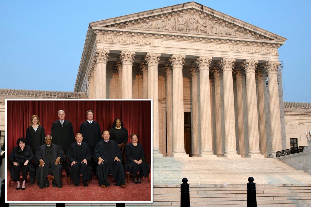 The Supreme Court docket is mostly thought to have six conservative justices and three liberal justices, with the previous roster consisting of Chief Justice John Roberts and Affiliate Justices Amy Coney Barrett, Neil Gorsuch and Brett Kavanaugh along with Thomas and Alito.